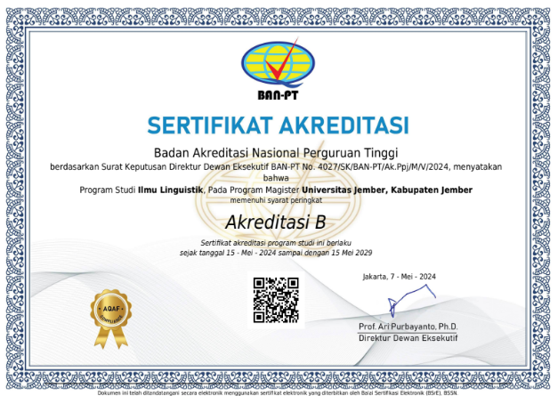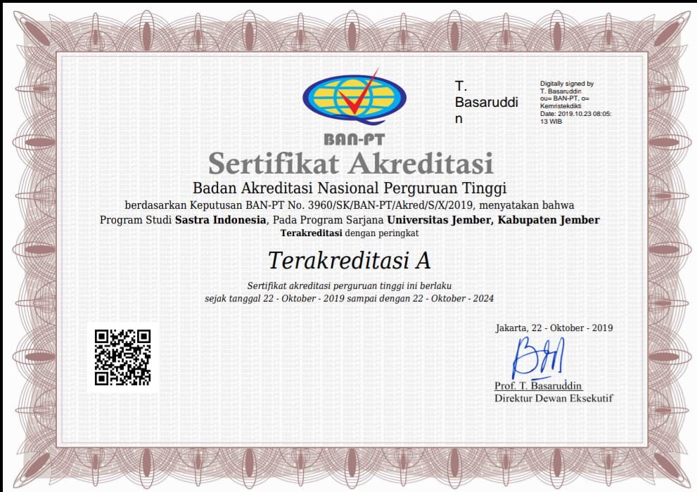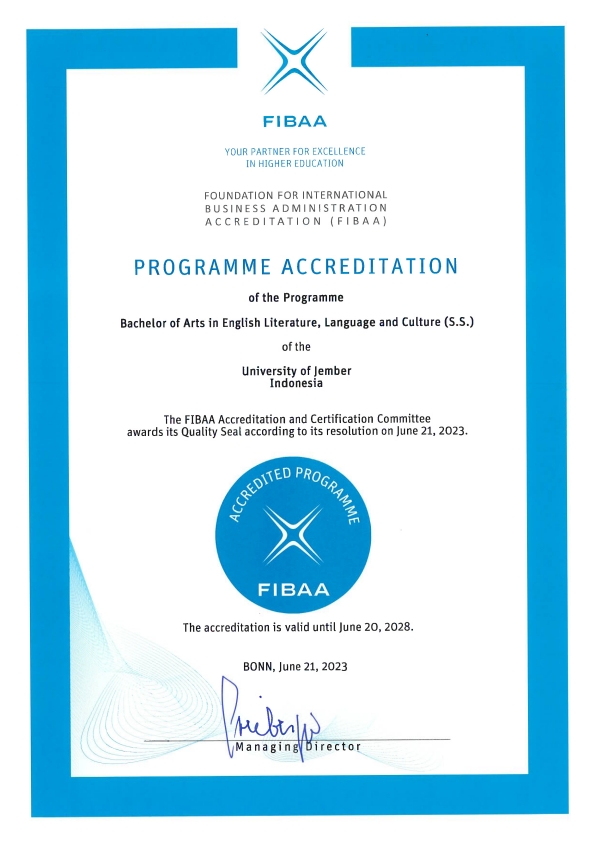Berikut daftar Akreditasi Jurusan dan Program Studi di Fakultas Ilmu Budaya Universitas Jember: