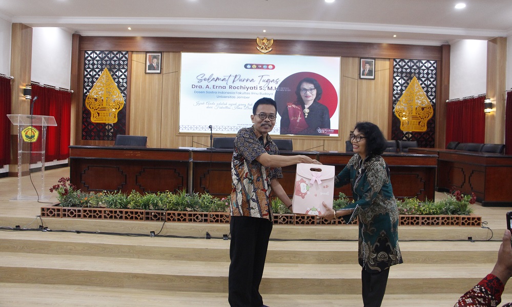 Dalam kesempatan tersebut, Dra. A. Erna Rochiyati S, M.Hum., menyampaikan kesan dan pesannya yang mengharukan, termasuk kisah manis yang menjadi bagian penting dari perjalanannya di UNEJ.